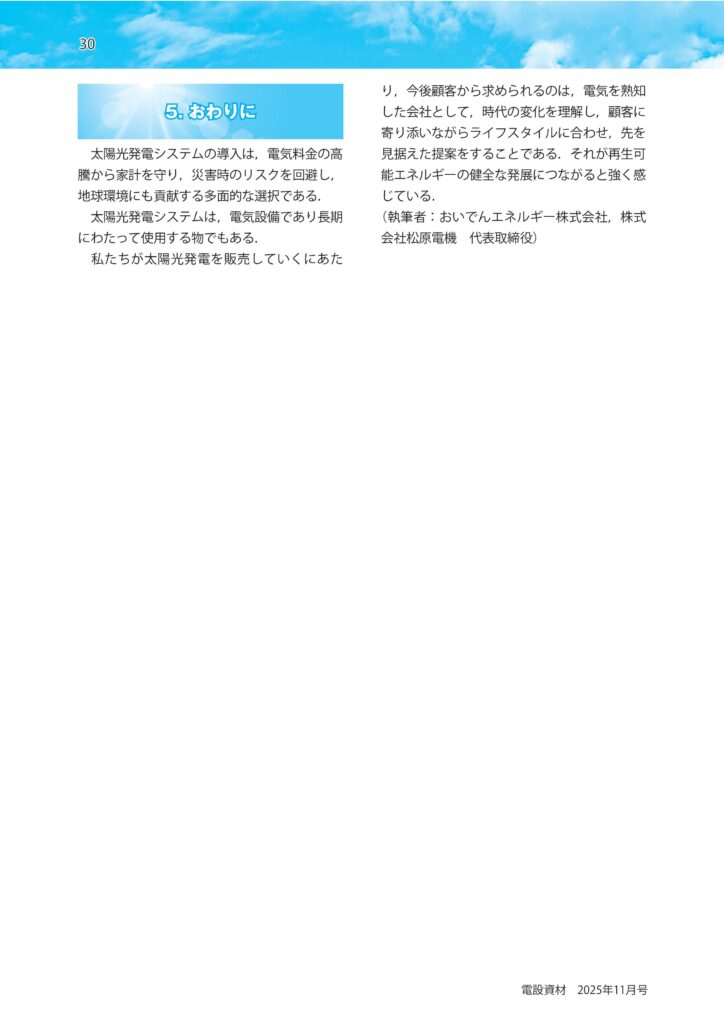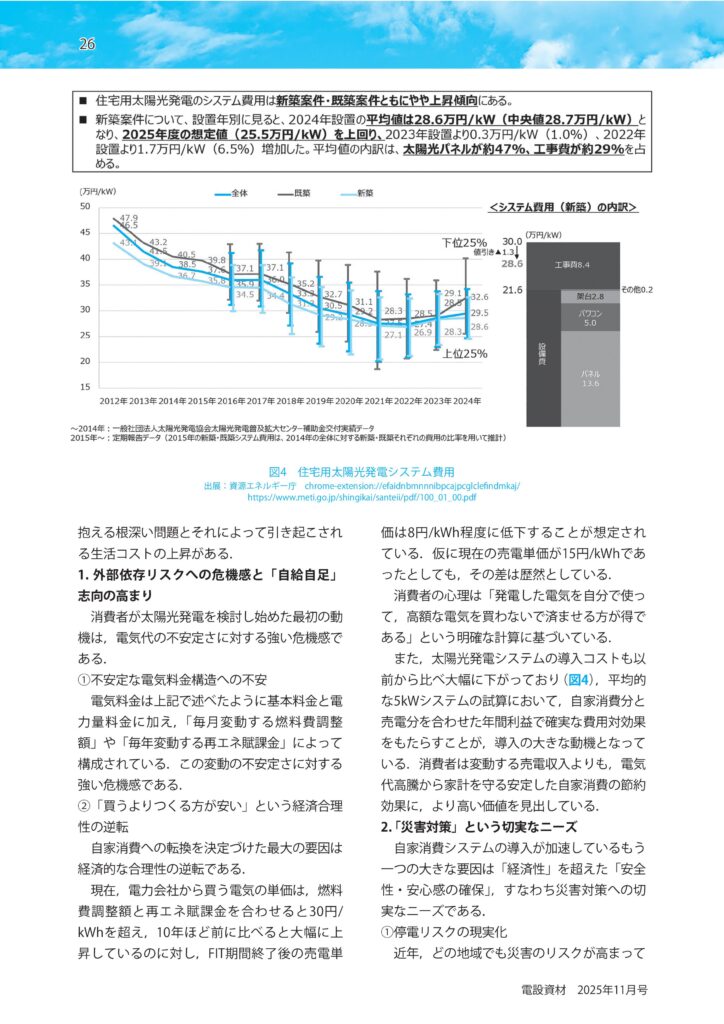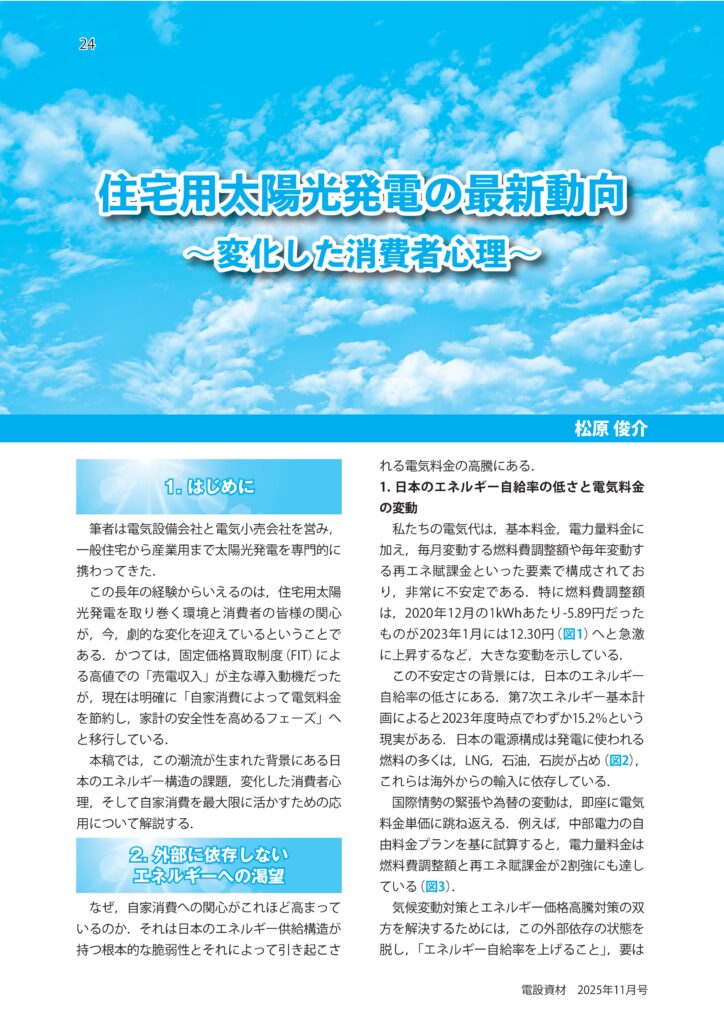 業界誌「電設資材」に記事を執筆しました― 住宅用太陽光発電の最新動向 ―