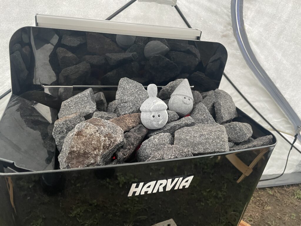 サウナの電気ストーブは、フィンランドの「ハルビア」製で薪ストーブとはまた違った温まり方をします。